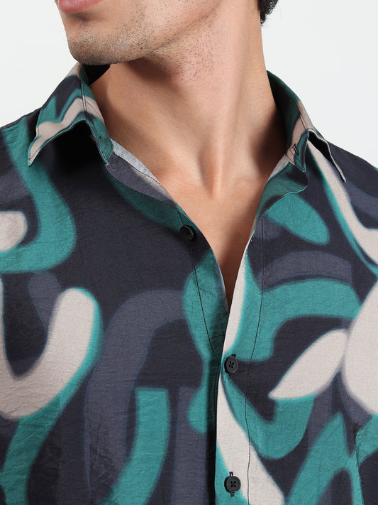 GREEN ABSTRACT SLIM FIT SHIRT