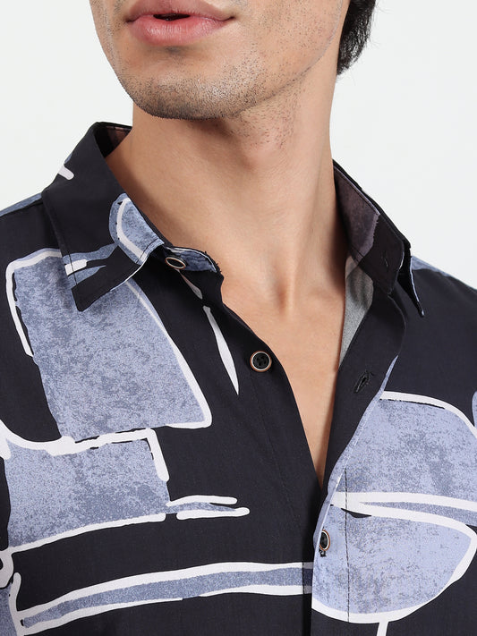 BLACK ABSTRACT SLIM FIT SHIRT