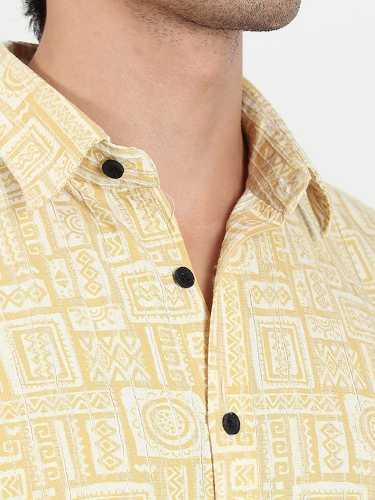 YELLOW TEXTURED SLIM FIT SHIRT
