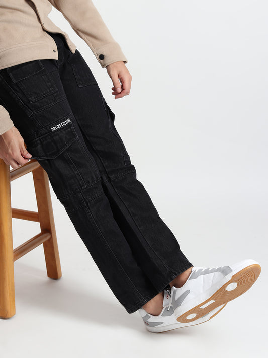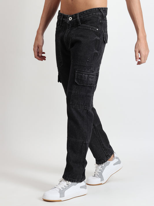 BLACK MILD WASH COMFORT FIT CARGO PANTS