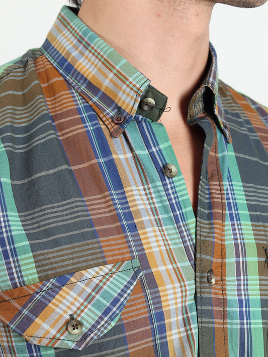 DARK GREEN CHECKED SLIM FIT SHIRT
