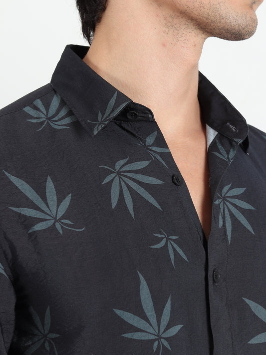 BLACK LEAF PRINTED SLIM FIT SHIRT