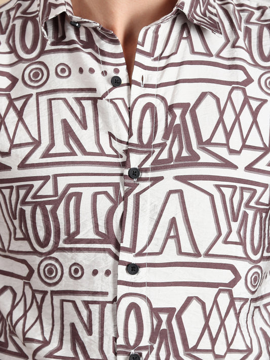 BROWN ALPHABET PRINTED SLIM FIT SHIRT