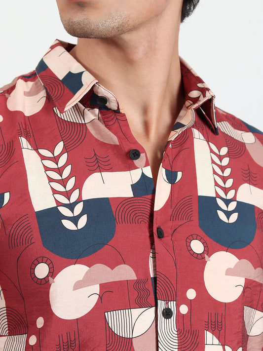 MULTI COLOURED ABSTRACT SLIM FIT SHIRT