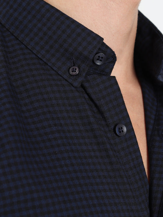 NAVY BLUE CHECKED SLIM FIT SHIRT