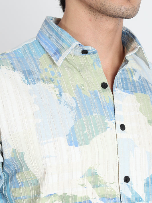 MULTI PRINTED TEXTURED SLIM FIT SHIRT