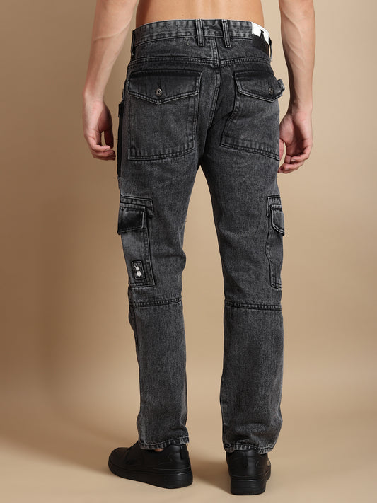 BLACK MILD WASH COMFORT FIT CARGO PANTS