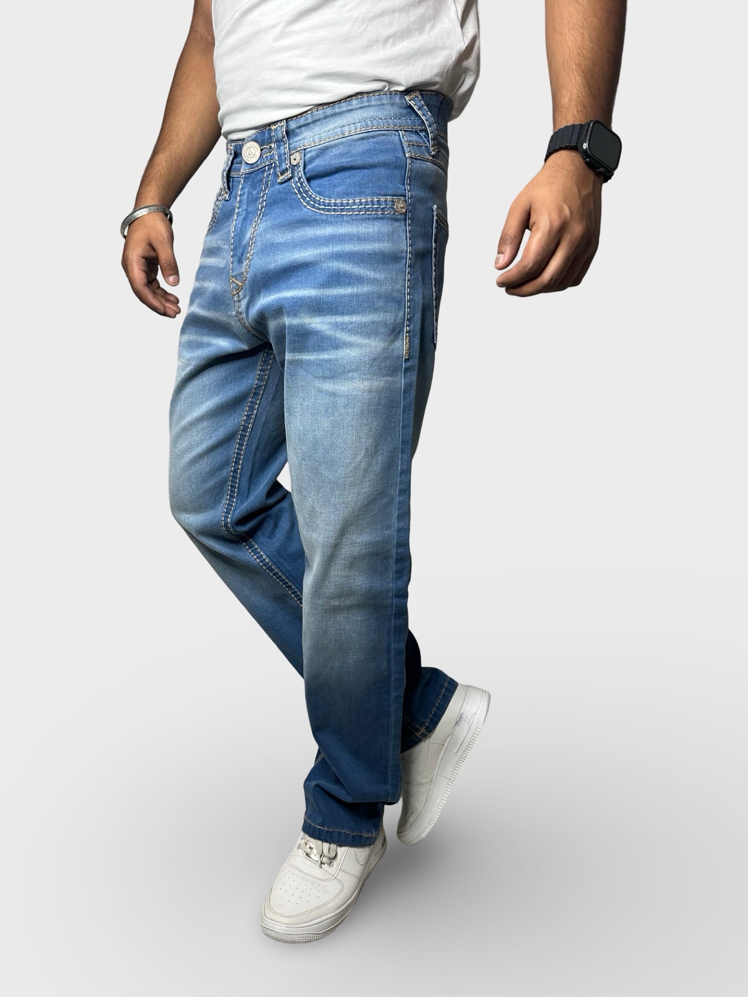 Men’s Comfort Fit Dark Blue Jeans with Premium Thread Work