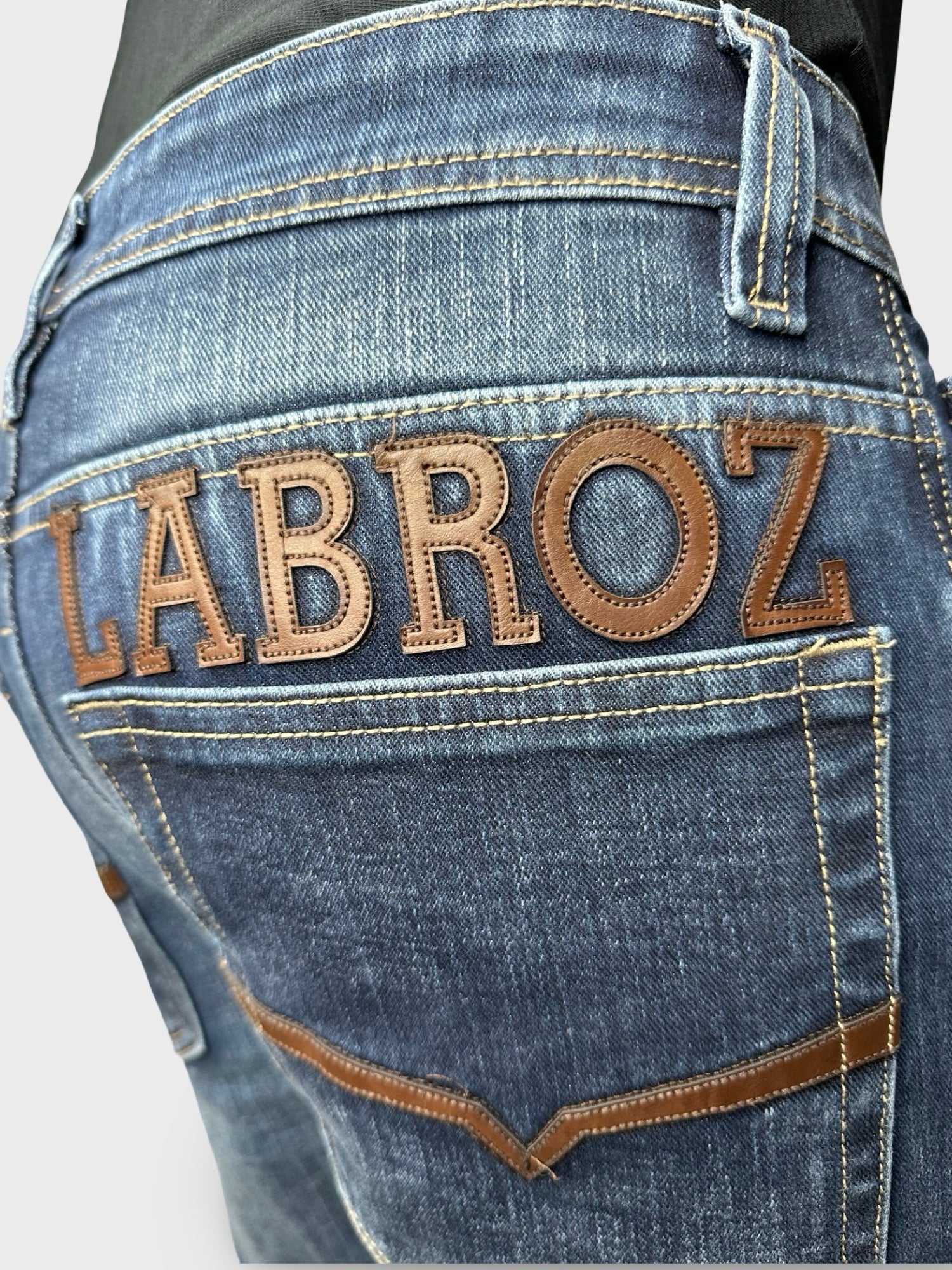 - DETAILS: Distinctive Labroz branding with a metal name tag on the right pocket, cropped ankle-length fit, and detailed leather work on the back.
