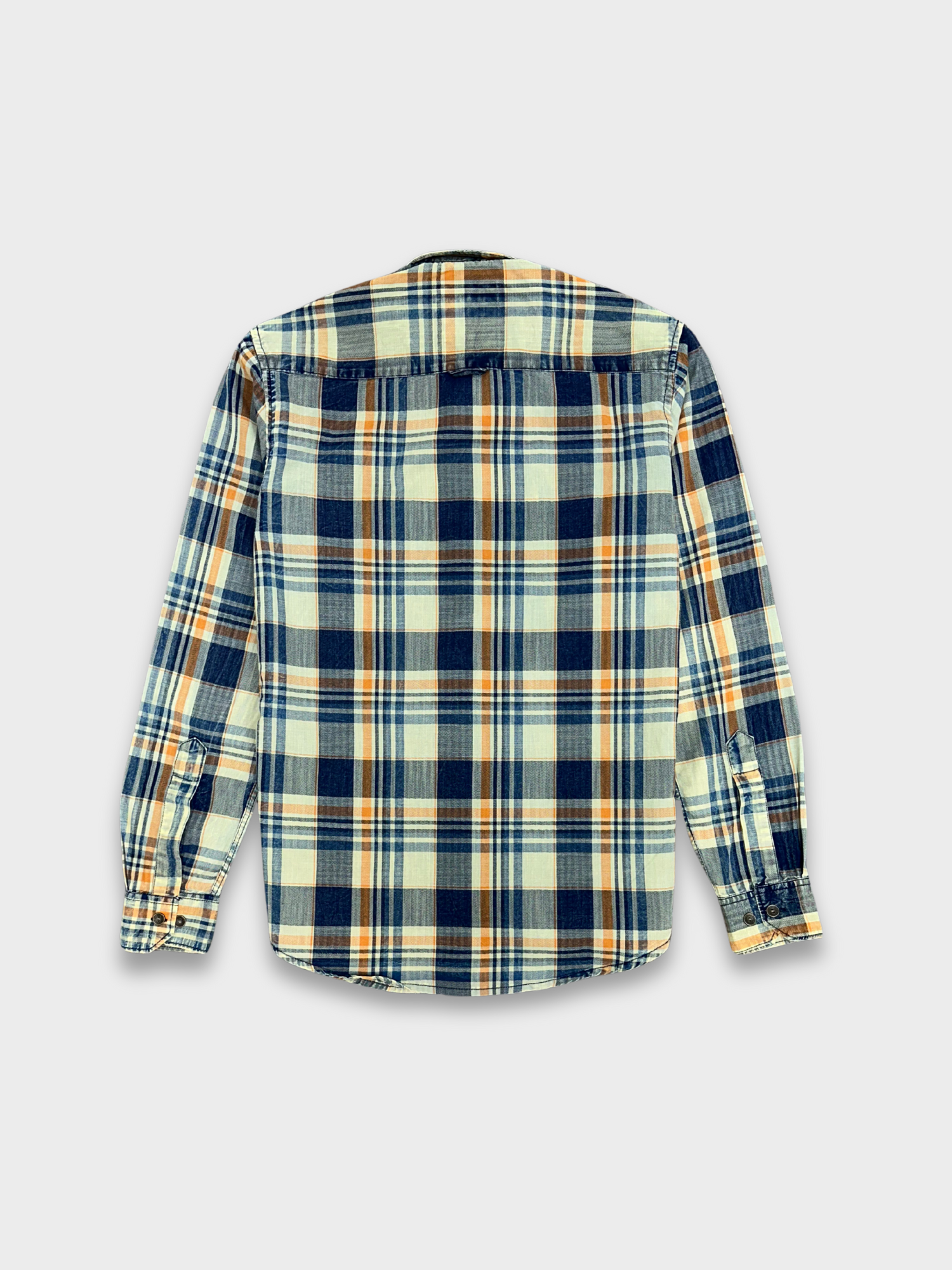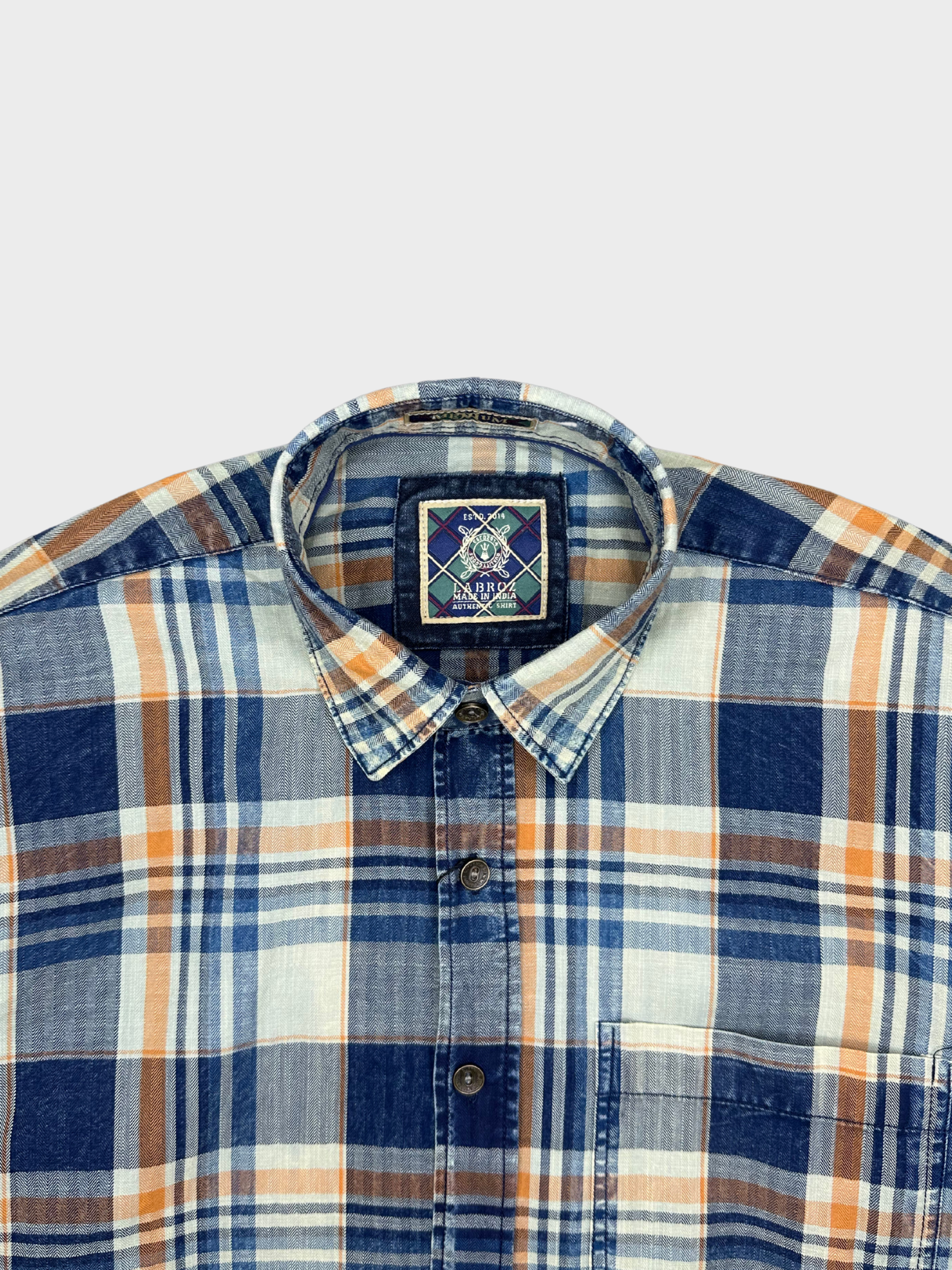 STYLE GUIDE: Achieve a rugged, classic, and versatile look with our men's herringbone indigo overdyed check shirt. This piece is perfect for creating a sharp, smart-casual ensemble. Team it up with black chinos or dark-wash denims and formal shoes or casual sneakers for an all-day stylish and confident appearance. Ideal for casual gatherings, weekend trips, or adding a touch of classic style to your everyday wear.