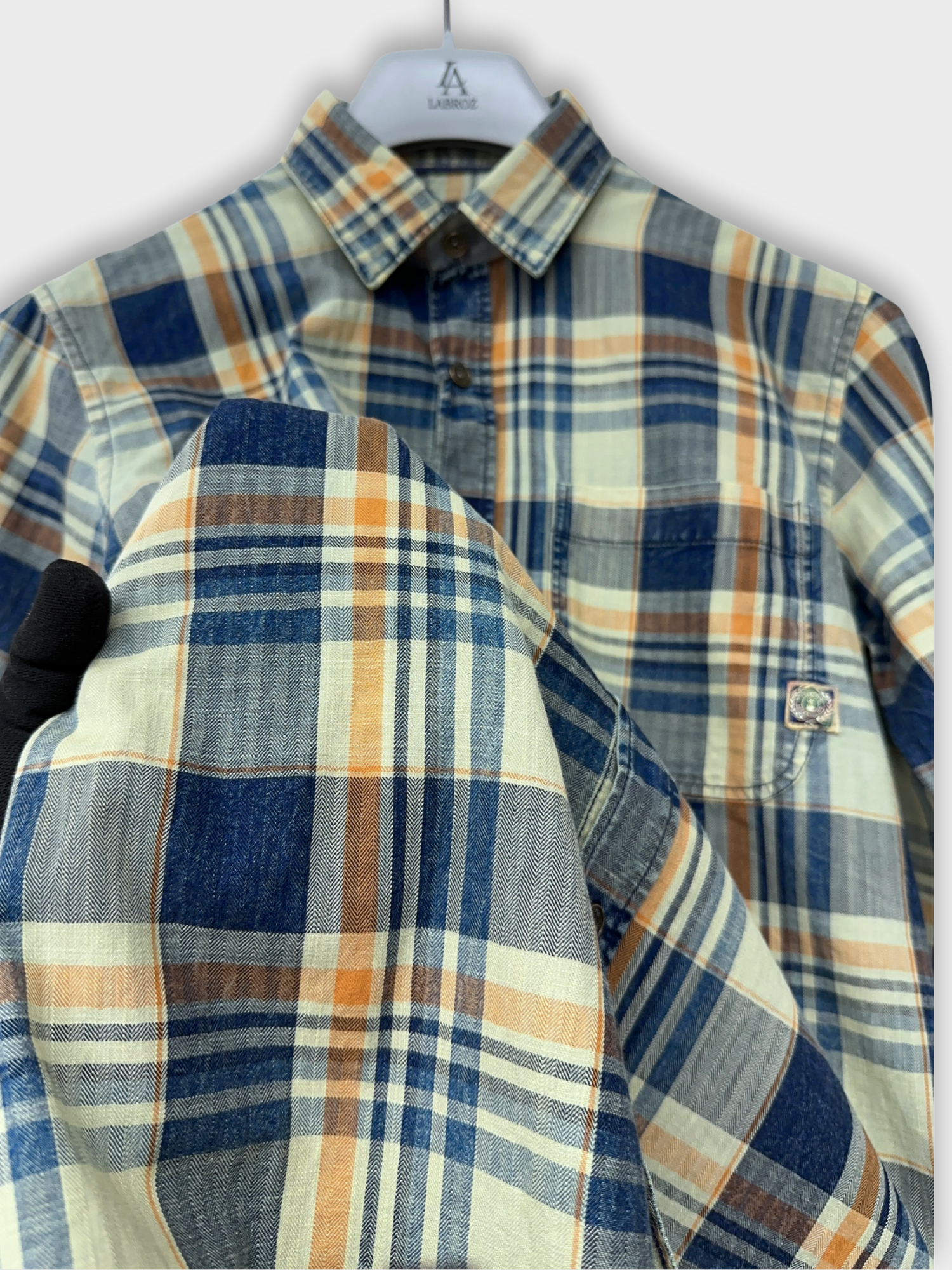 - FABRIC: Herringbone Indigo Overdyed Checks