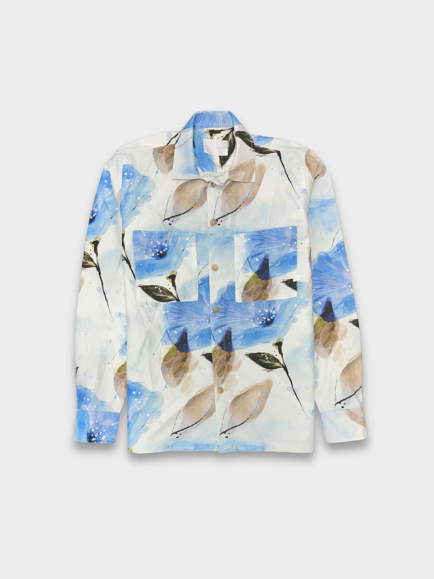STYLE GUIDE: Make a bold, contemporary, and relaxed statement with our men's floral print heavy twill shirt. This piece is perfect for achieving an artistic, vacation-ready, and effortlessly cool look. Team it up with tailored shorts or light-colored chinos and white sneakers or espadrilles for an all-day vibrant and resort-ready appearance. Ideal for summer parties, tropical trips, or elevating your casual weekend style.