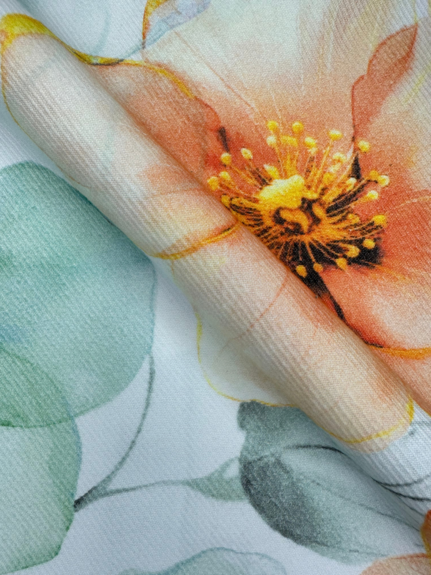 - DETAILS: Features a durable, textured heavy twill fabric with a large-scale floral pattern and two functional chest pockets for added utility and style.