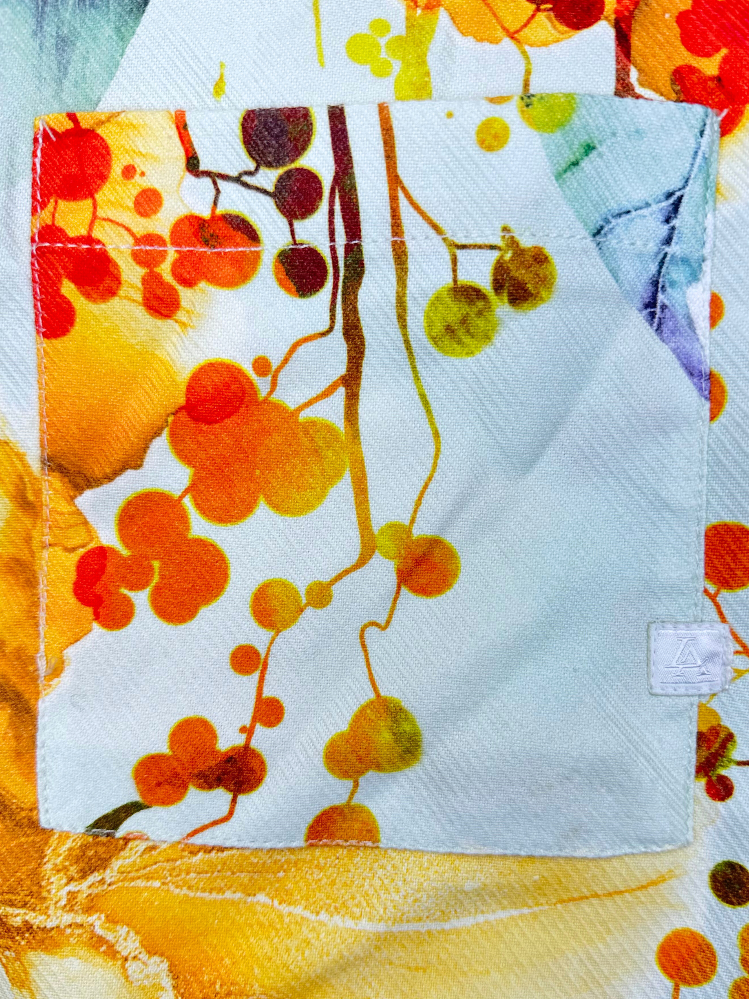 • DETAILS: Features a durable, textured heavy twill fabric with a large-scale floral pattern and two functional chest pockets for added utility and style.